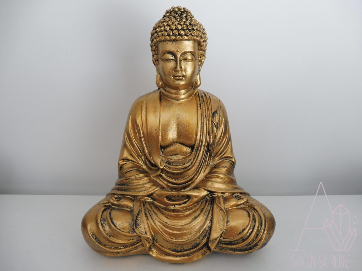Statuette Bouddha doré ouvert sur le monde 20cm de hauteur, 10cm de largeur, 16cm de longueur, 350grs (en résine)